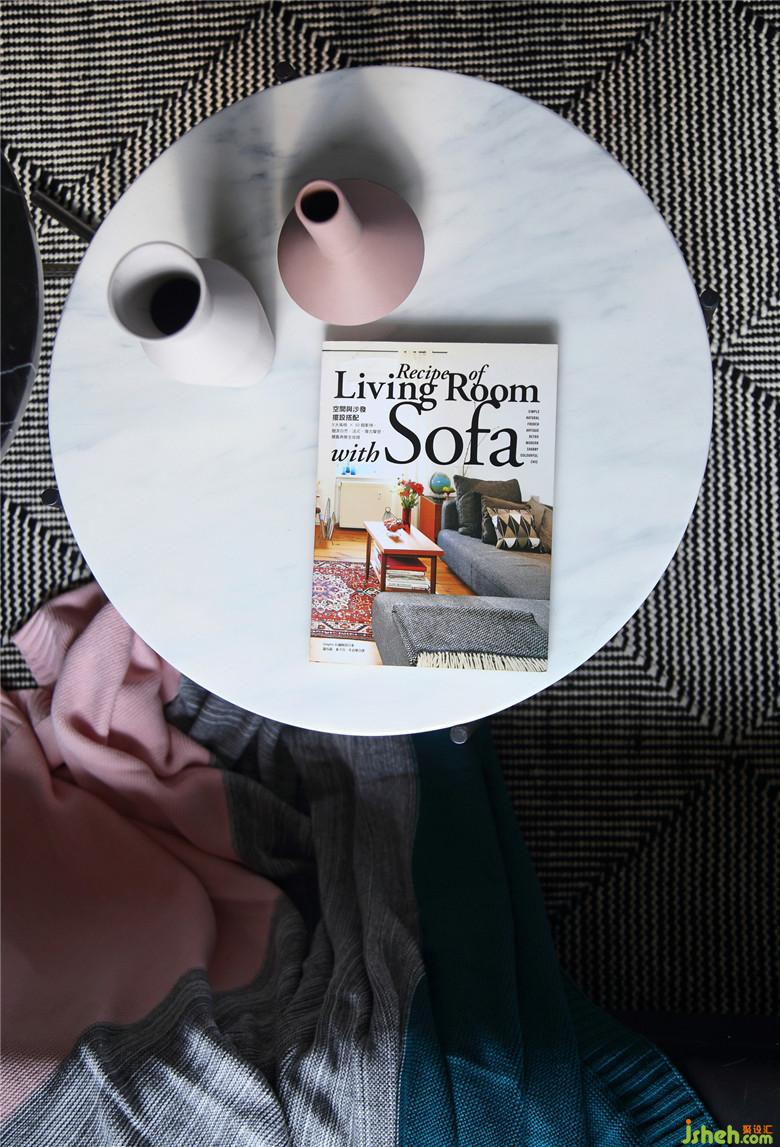 ▲清新而靚麗的色彩,舒適而具有腔調(diào)感的家具,色彩與材質(zhì)的搭配尤為重要。布藝沙發(fā)、大理石茶幾、木質(zhì)單人椅,溫柔與冷硬,在多元素的裝點下,卻能達(dá)到一種平衡狀態(tài),和諧且有趣??蛷d的沙發(fā)背景墻室內(nèi)設(shè)計師選擇了少女心滿滿卻不落俗套的臟粉色系,而一些小配飾也與之呼應(yīng),茶幾上的小擺件也精心的選擇了同色系。
