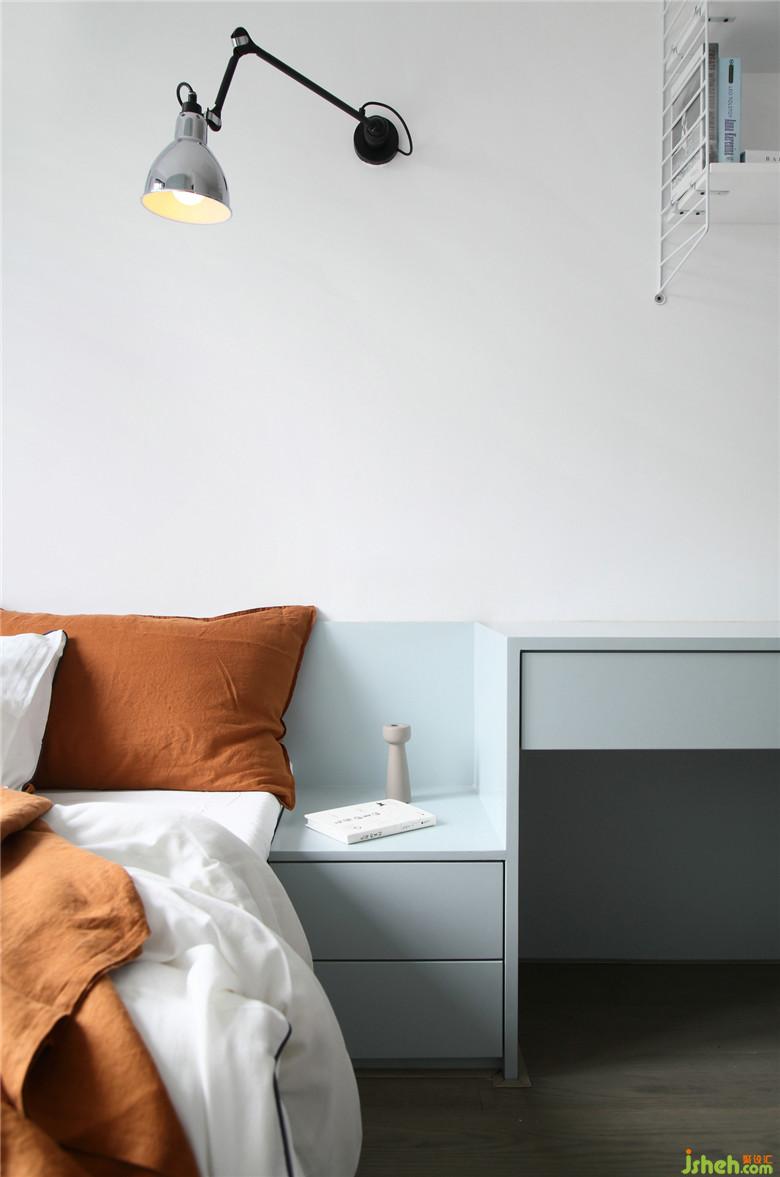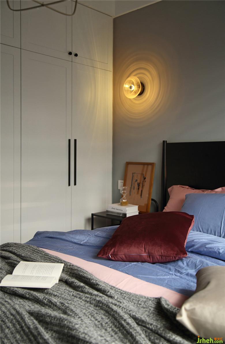 ▲臥室的床品配色與客廳相輔相成,粉+藍(lán),搭配柔軟的針織品、顏色鮮明的個(gè)性裝飾畫,中和了空間中的清淺。而床頭的小臺(tái)燈與壁燈發(fā)散出光圈般的光影,讓睡眠與藝術(shù)融為一體。幸福而知足的生活莫過(guò)于“暗夜有暖燈,窗外有花開”了吧。