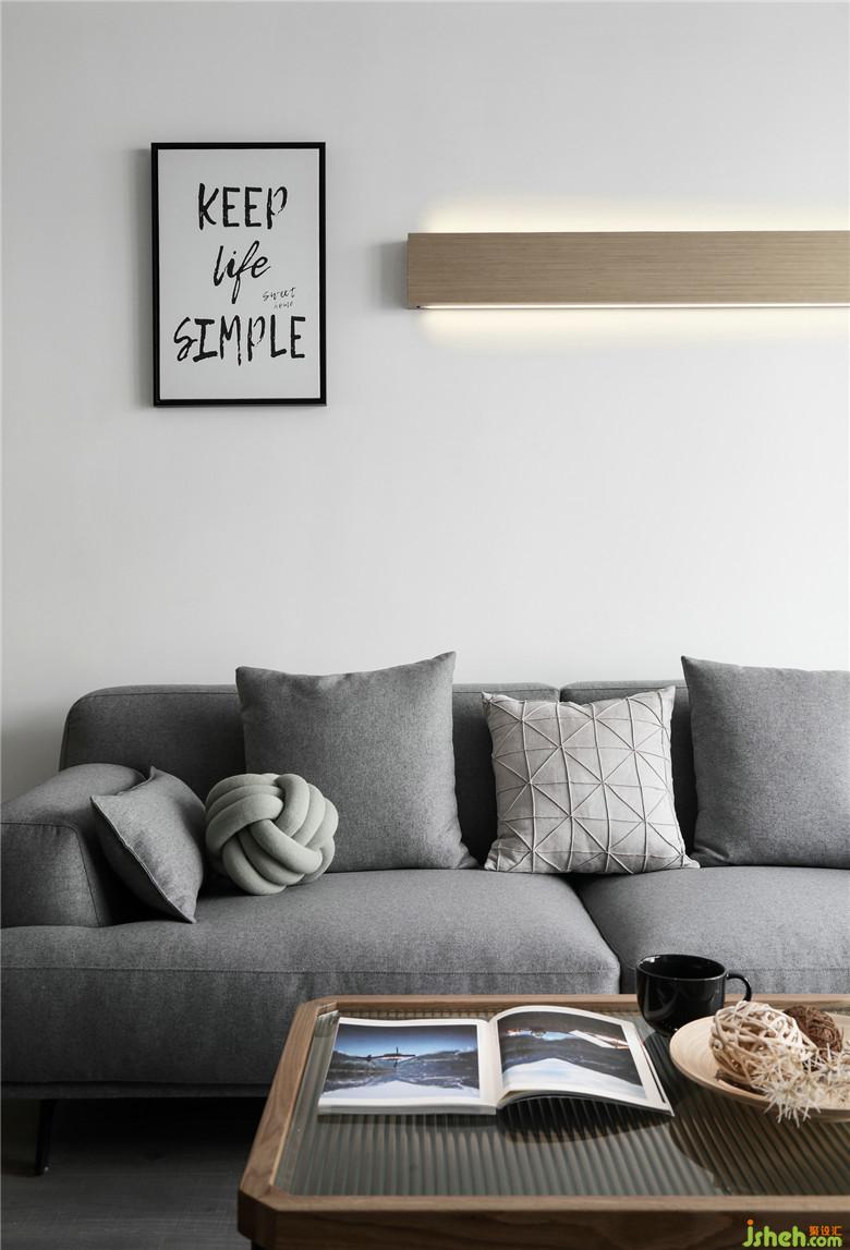 ▲沙發(fā)背景墻則以一幅簡(jiǎn)約的裝飾畫(huà)和裝飾嵌入燈條作為最終呈現(xiàn),恰到好處的留白讓空間通透。