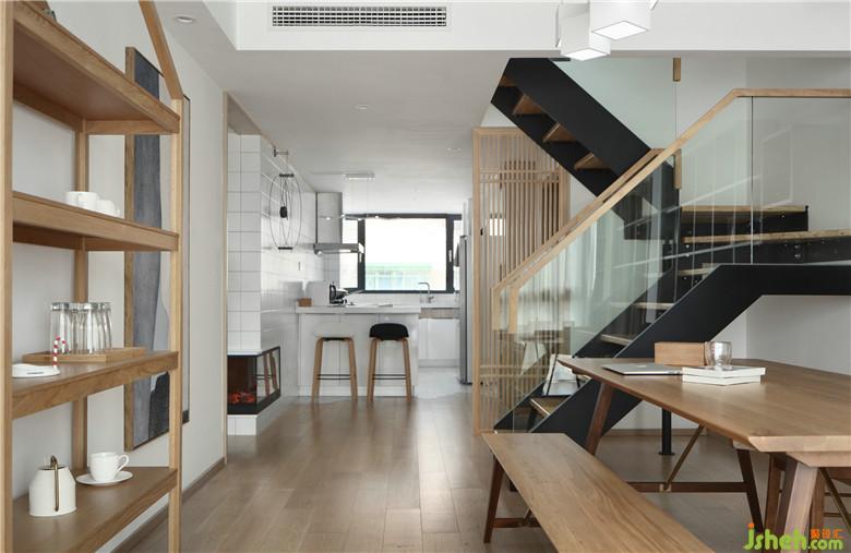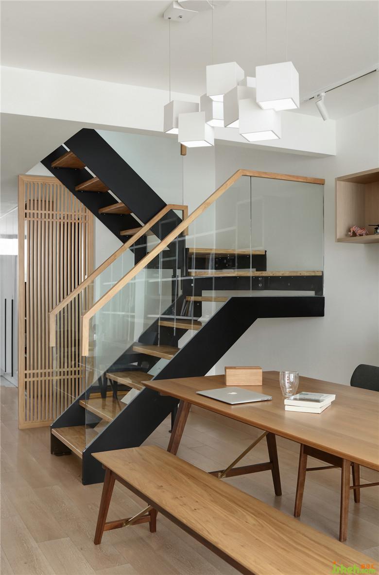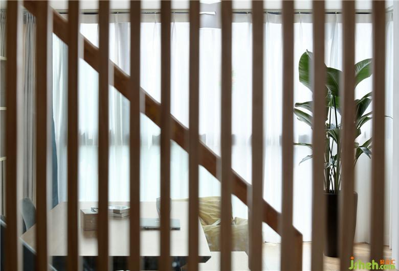 ▲入戶室內(nèi)設(shè)計師設(shè)置了木格柵,一方面起到玄關(guān)隔斷裝飾性作用,另一方面也規(guī)避樓梯腳,避免進(jìn)門看到樓梯的尷尬。而木格柵的虛虛實實,半開放的形式也讓整個空間貫穿起來,使入戶開闊。