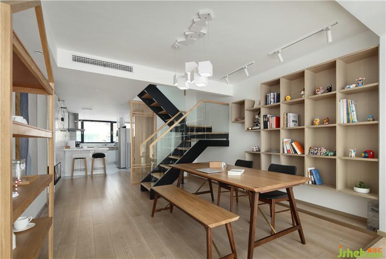 ▲考慮到屋主喜歡現(xiàn)代化、多功能的生活方式,于是室內(nèi)設(shè)計師無論在材質(zhì)、顏色搭配或是功能區(qū)布局上,以靈動、多用途進(jìn)行規(guī)劃。因為二層空間已經(jīng)有了很多休閑區(qū)域,一層我們盡量用作孩子的學(xué)習(xí)娛樂,而且一家人喜歡做手工,這樣的一張大桌足夠用于家庭的學(xué)習(xí)娛樂了。