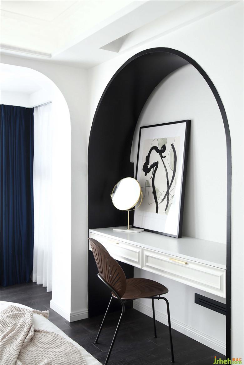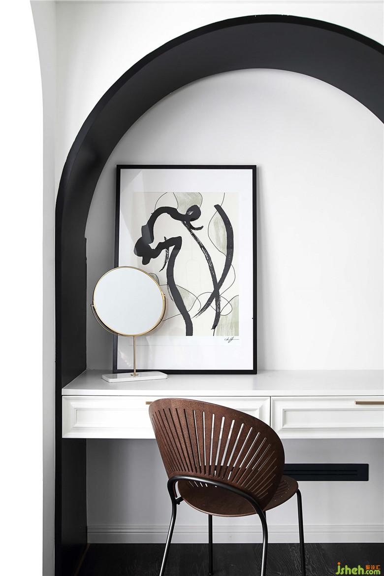 拱形的墻體造型堆砌出梳妝臺溫藹的浪漫氣質(zhì),搭配具有設(shè)計感的孔雀椅,不張揚,不顯露,卻氣質(zhì)自生。