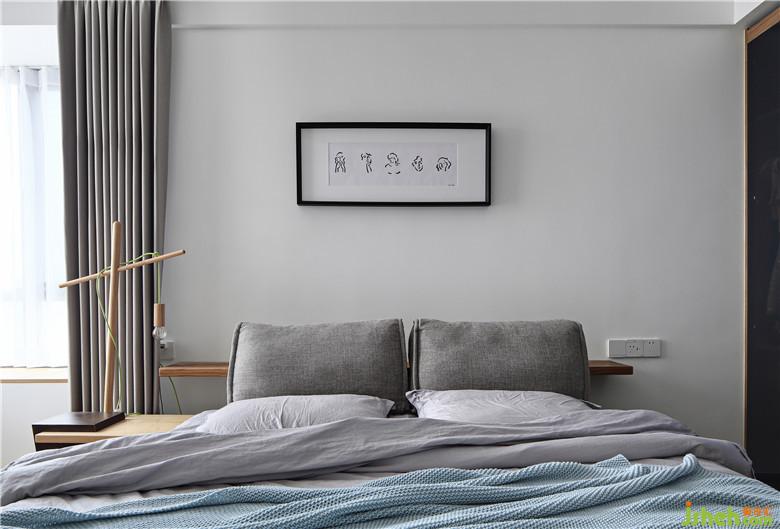 主臥是沒有距離感的素色,凝聚了古典的氣質(zhì)但仍然是輕盈的。造型特別的床頭柜結(jié)合床頭吊燈的形式趣味盎然,灰色調(diào)的床品為空間注入源源不斷的溫柔氣質(zhì),業(yè)主自己畫的小畫掛在床頭,這就是有生活氣息的家。