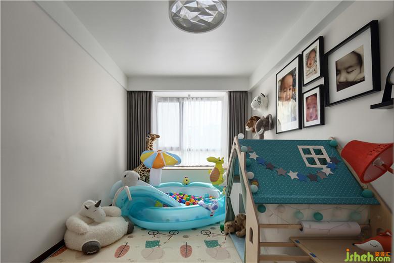 這樣的兒童房應(yīng)該是每個(gè)人童年的夢(mèng),小小的童話中一樣的屋子,裝滿球的游泳池,角角落落有很多小動(dòng)物,墻上掛著的是孩子的照片,孩提時(shí)候一定是幸福的!