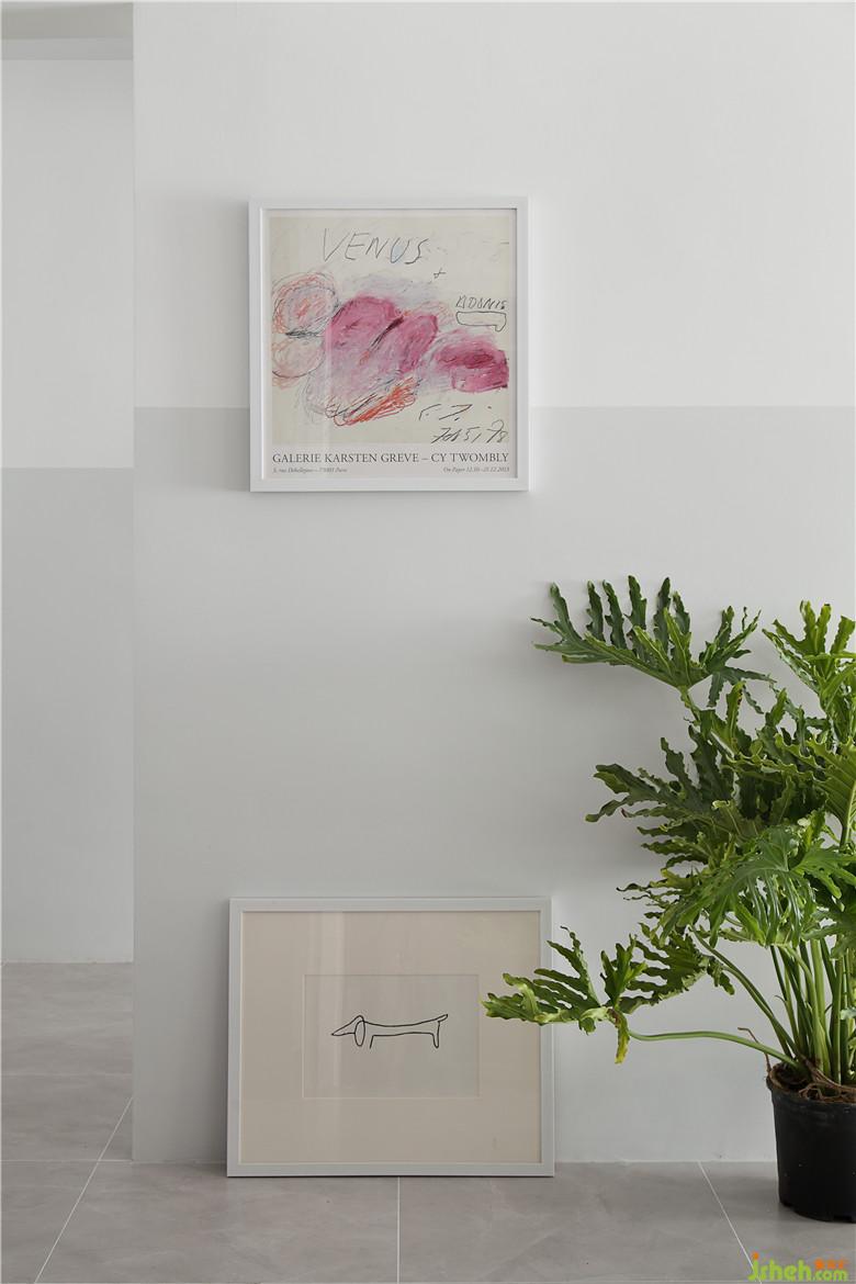 白與鴨蛋青二分的墻面是極清爽細(xì)膩的,搭配業(yè)主收集的各類風(fēng)格畫作或是綠植都像是融于背景中的最佳底色。
