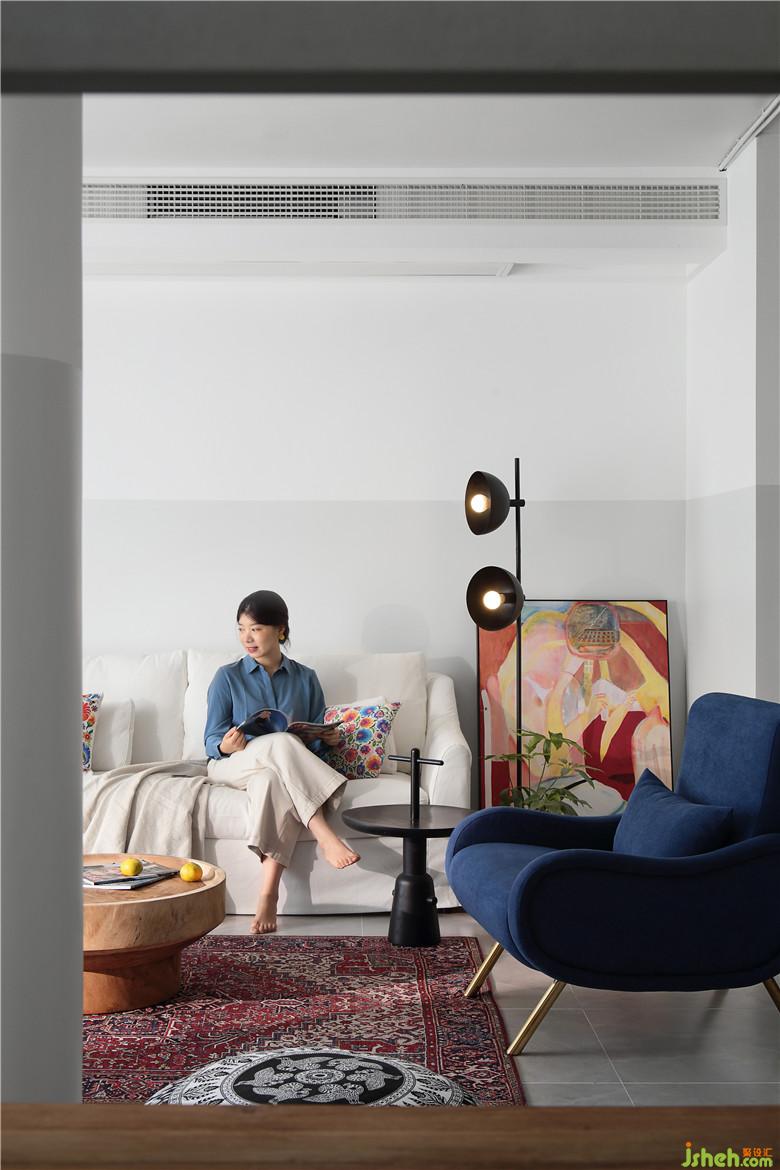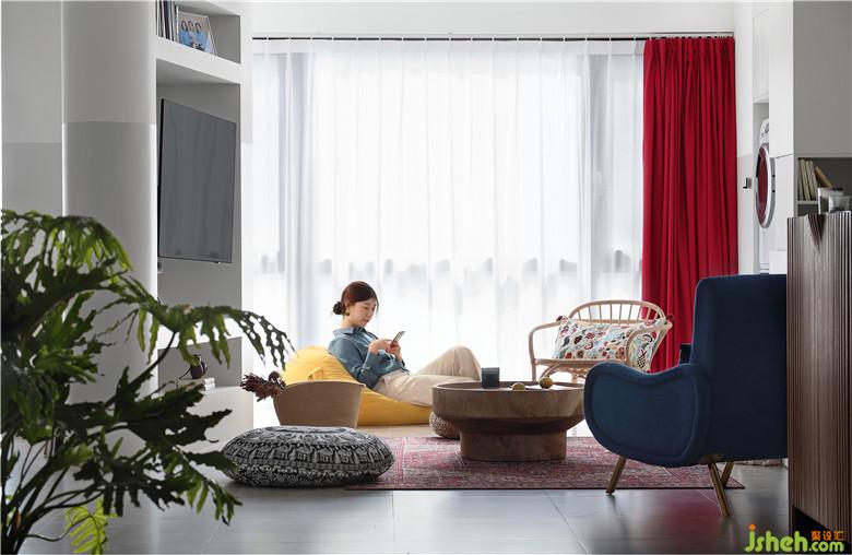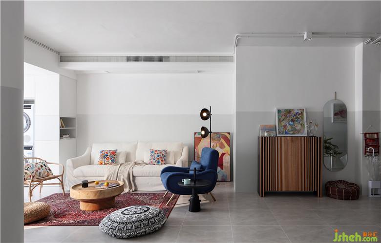 客廳中無論沙發(fā)、椅子、地毯或是燈具都充滿了自由的氣息。這是業(yè)主參與度很高的軟裝擺設(shè),每一段旅途中被帶回來的物品,在之后生活中的某刻開始將為你拼湊出一個(gè)獨(dú)屬于自己的家,包含個(gè)人的品味與經(jīng)歷,為原本固態(tài)、空闊的空間添上個(gè)人的特質(zhì)。
