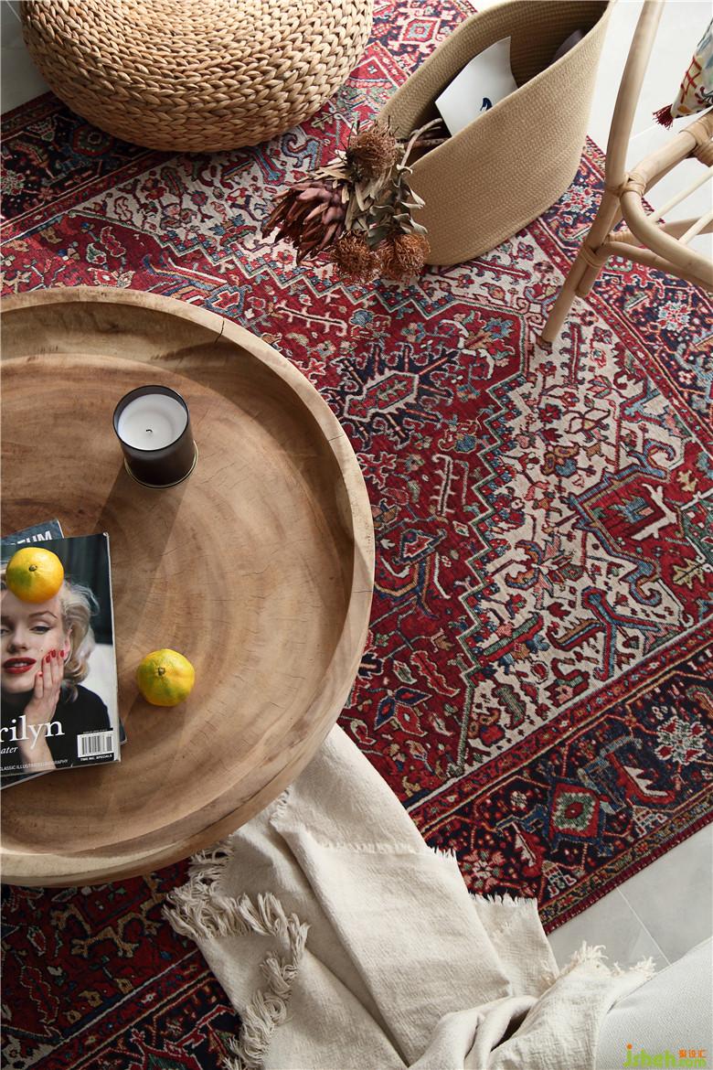 外形質樸的茶幾帶著自然風貌與人工痕跡,讓地毯的喧囂與華麗漸漸淡去。