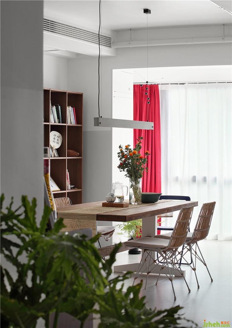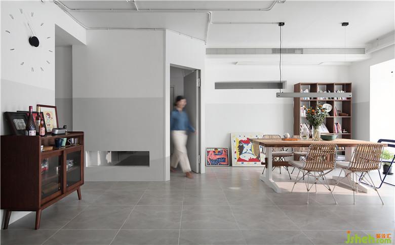 次臥空間的拆除,為家中打開了開闊的餐廳,臥室與餐廳間墻面的鏤空讓臥室空間通透,餐廳的背景也生動有趣起來。