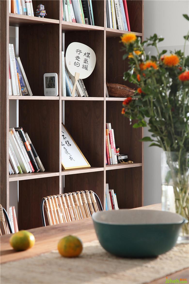 造型簡單的書架,擺滿書就洋溢出生活氣息。