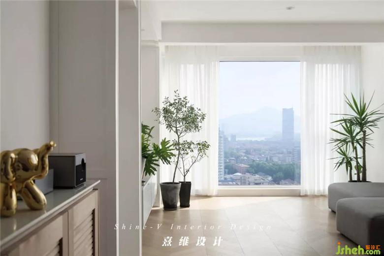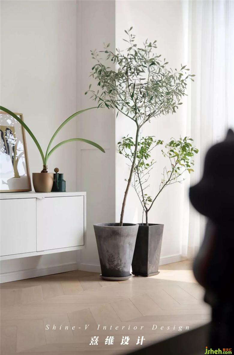▲留白的電視背景墻,懸空的簡約電視柜,都被植物裝點(diǎn)。屋內(nèi)細(xì)節(jié)處處都被不同的植物穿插點(diǎn)綴,與家具物品不同的舒展形態(tài),是讓人可以感受四季與生命力的存在,于是家中的景更鮮活起來。