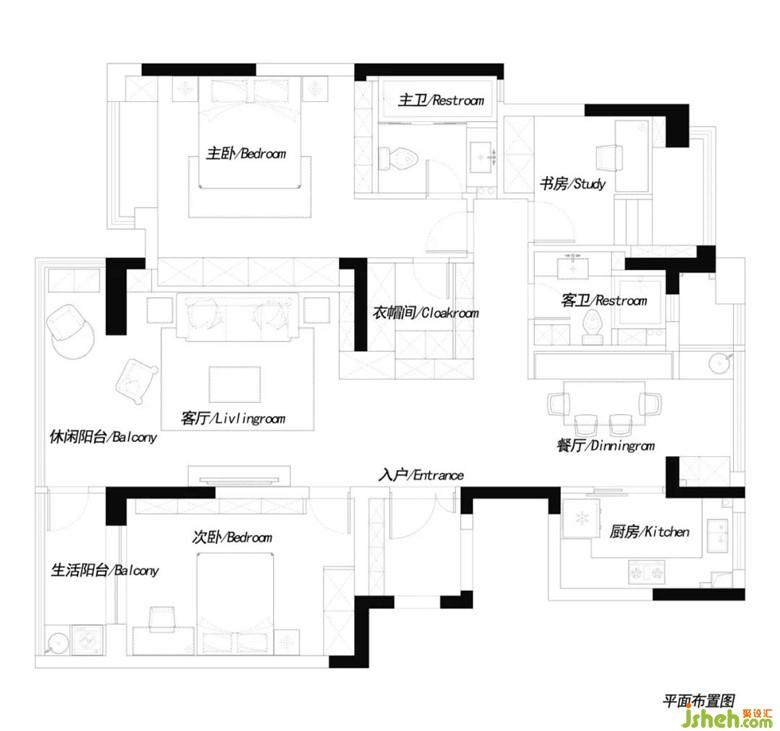 ▲深色瓷磚鋪貼的客衛(wèi),營造出一種私密的氛圍。造型簡潔,顏色清淡的浴室柜與壁龕涵蓋了衛(wèi)生間所需要的所以收納空間。裝修公司