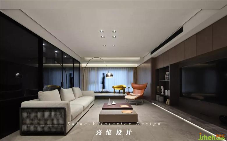 電視背景墻柜體的胡桃木色不惹眼,如同陰天的油畫,卻被橘色的火光烘托,直讓人覺(jué)得踏實(shí)與溫暖。