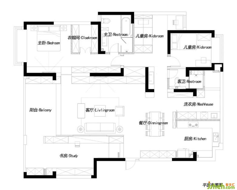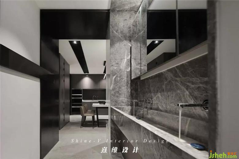 ▲起居空間與居住空間走道位置的重新規(guī)劃,讓客衛(wèi)干濕分離得以完全實(shí)現(xiàn),干區(qū)被調(diào)整到一面承重墻的小夾角中,客衛(wèi)位置的微調(diào)依然緊鄰兒童房,又變得更方便起居空間使用。