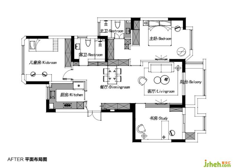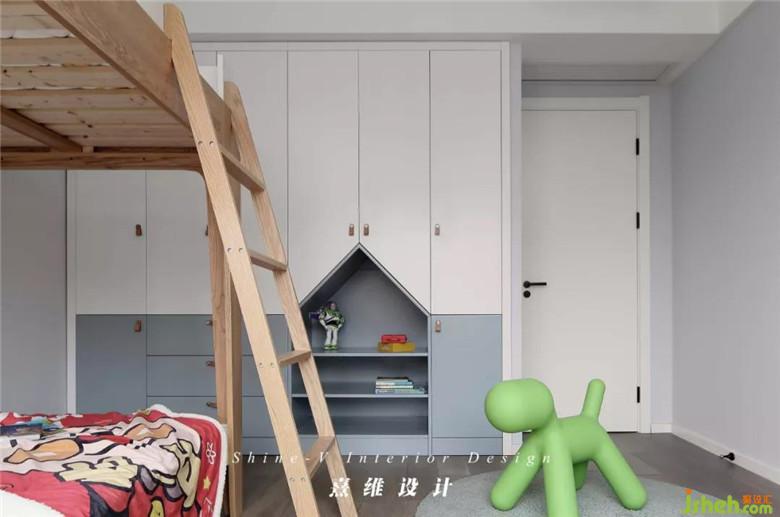 ▲兒童房的衣柜被乳白與灰藍(lán)一分為二,明亮又天真。從功能上除了封閉式衣柜的部分,還開(kāi)辟了小小一塊尖頂小屋形狀的展示柜,孩子喜歡的讀物、玩具有了顯眼便于拿取的位置擺放。柜門(mén)與抽屜選擇皮質(zhì)的拉環(huán),避開(kāi)硬的材質(zhì)會(huì)造成的磕碰。