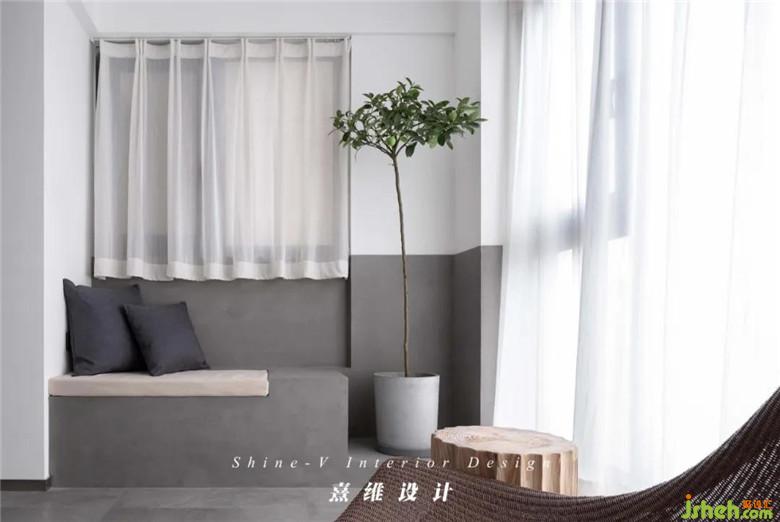 ▲陽臺的落地窗令光線灑落全室,窗簾選擇雪紡質(zhì)地,光的行進(jìn)有了柔和的轉(zhuǎn)折。