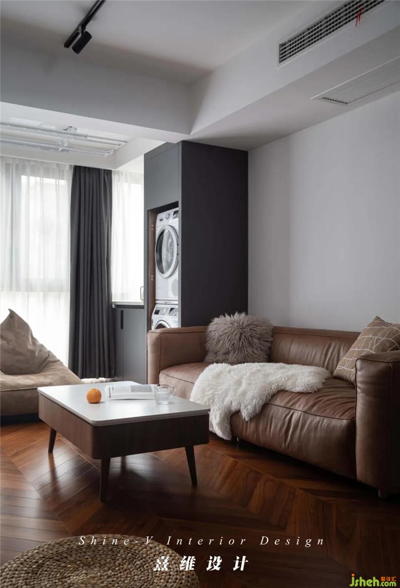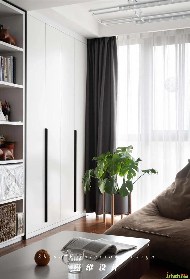 ▲電視背景墻的白色繼續(xù)延伸,至陽臺一側,成為可以囊括雜物的封閉收納空間,由琳瑯滿目升騰成統(tǒng)一的白,裝修公司以內(nèi)置最大限度的減少雜亂,萬千思緒被修整輕盈。
