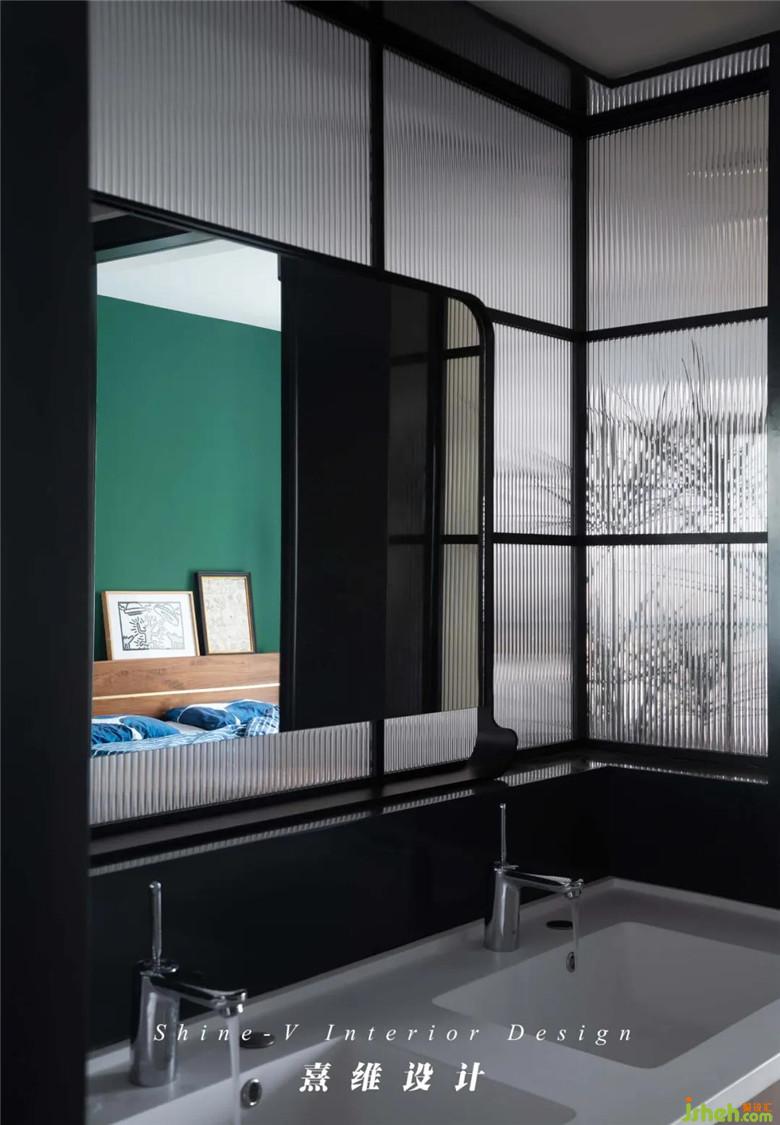 ▲衛(wèi)生間的干區(qū),剛好劃分開餐廳與主臥的界限,裝修公司以功能作為公共空間與私密空間的過渡。
