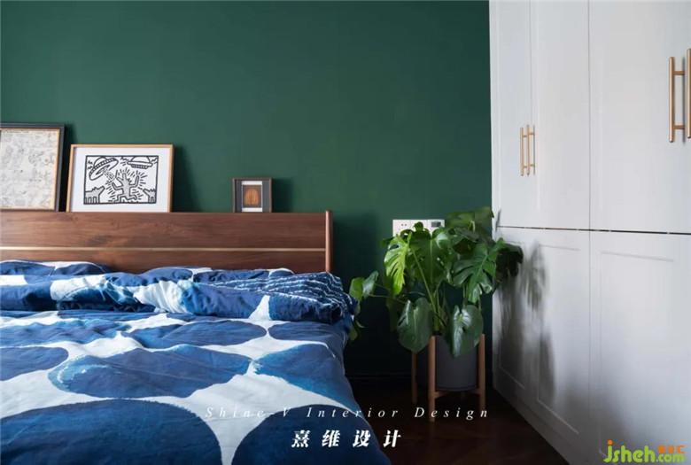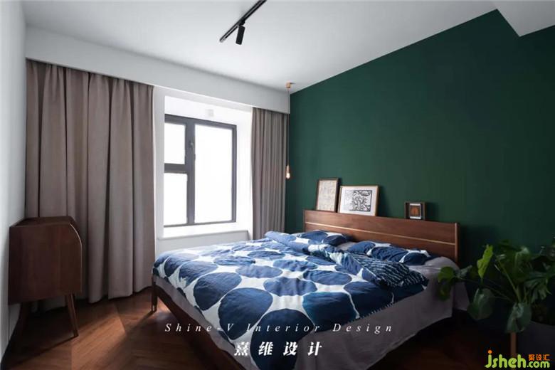 ▲臥室有一面復(fù)古綠的墻,角落邊復(fù)古造型的小斗柜讓氛圍微妙的醇厚起來,燕麥色的窗簾與溫情連接,幾幅小畫隨意的放在床頭,從醇厚中透出來的仍然是一派陽光率性。