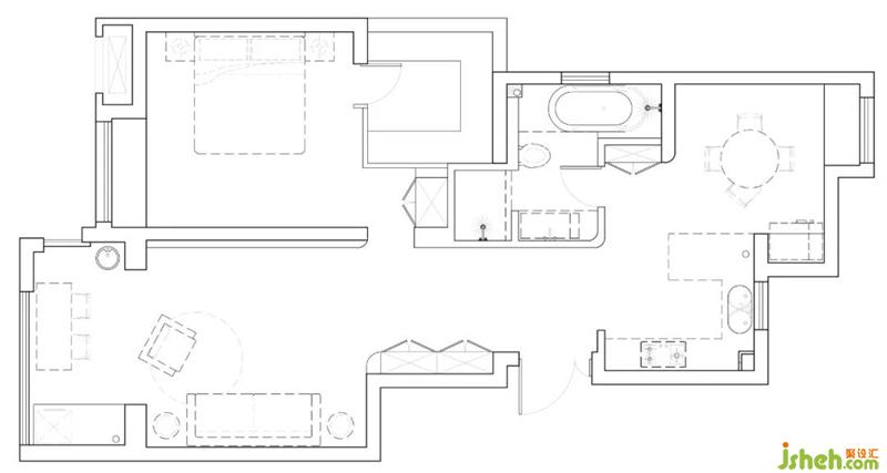 基于業(yè)主常住人口是兩位,后期也不會(huì)更加,所以只保留了一個(gè)臥室,將其中一個(gè)臥室打開(kāi)作為餐廳使用,進(jìn)門(mén)口合理規(guī)劃動(dòng)線,重新排布衛(wèi)生間動(dòng)線,保證淋浴和浴缸,廚房做成開(kāi)放式,和餐廳進(jìn)行融合,生活本是一體的,不管是在做飯,在用餐,還是安靜的坐著。