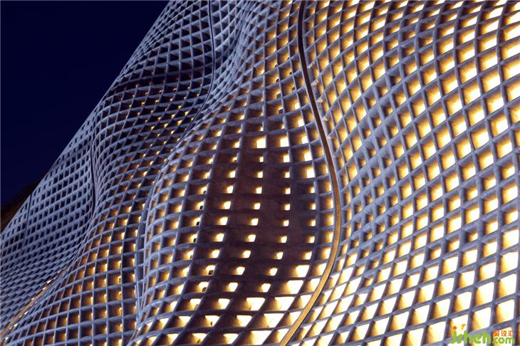 建筑表皮采用法國高纖維水泥,并使用風(fēng)洞式的參數(shù)化設(shè)計(jì),這是國內(nèi)首次使用該技術(shù)的建筑,曾被譽(yù)為世界知名十大透明建筑表皮。形態(tài)如被風(fēng)吹動(dòng),與大自然相融,堅(jiān)硬的水泥仿佛在這一瞬間變得柔軟。室內(nèi)設(shè)計(jì)師
