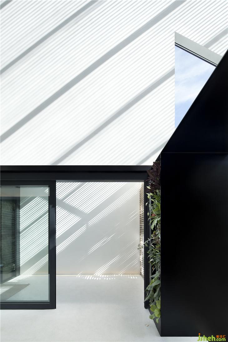 因入口朝北,很難有日照進(jìn)入,為了將自然光線有效的導(dǎo)入到室內(nèi),東西朝向的外立面上做了濾光處理,將日光映射在留白的墻面上,帶動(dòng)空間韻律,形成新的設(shè)計(jì)語言,光影流轉(zhuǎn),變化萬千。