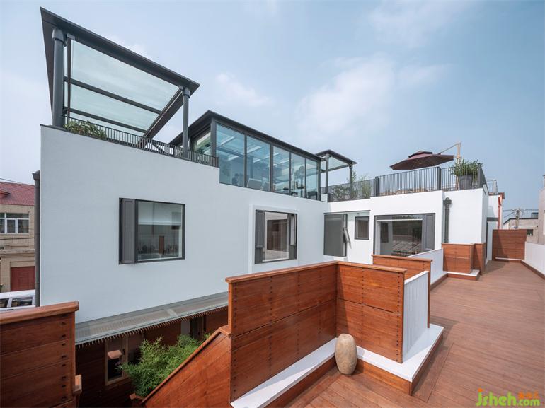北京的天空有時(shí)候是灰蒙蒙的,大面積的白色墻面把底色凈化出來(lái)。別墅裝飾庭院里種植大量竹子表意東方,營(yíng)造出區(qū)別于村鎮(zhèn)所在的另一個(gè)自然,像是北京對(duì)江南。無(wú)論陽(yáng)光、雨水還是聲響都沒有被隔在外部,遠(yuǎn)道而來(lái)的南方芭蕉和北方植物一起分享花房,新舊、內(nèi)外、南北、城鄉(xiāng)在進(jìn)退皆有余地的表達(dá)下消融了邊界。