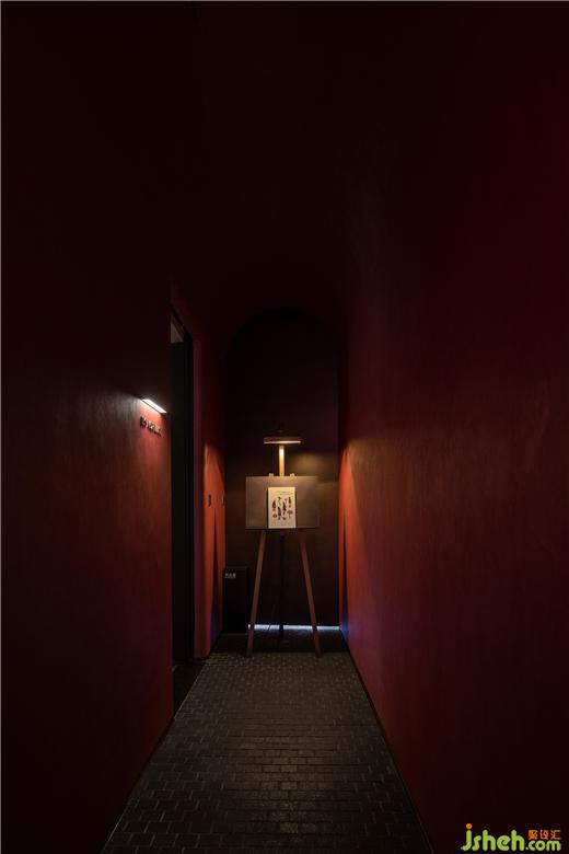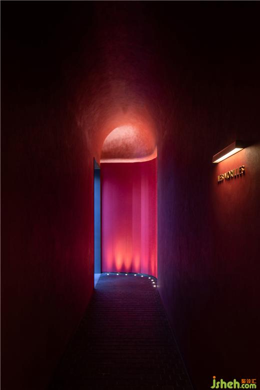 進(jìn)入甬道,眼睛要先適應(yīng)突然暗下來(lái)、涌向身體的光,洗墻光下橘色浮在石釘路上,墻壁斑駁微光,你仿佛聞見(jiàn)夜晚潮濕城市與內(nèi)陸河水的味道。你想要快點(diǎn)兒走到轉(zhuǎn)角,又被未知陌生暗暗牽拉著。