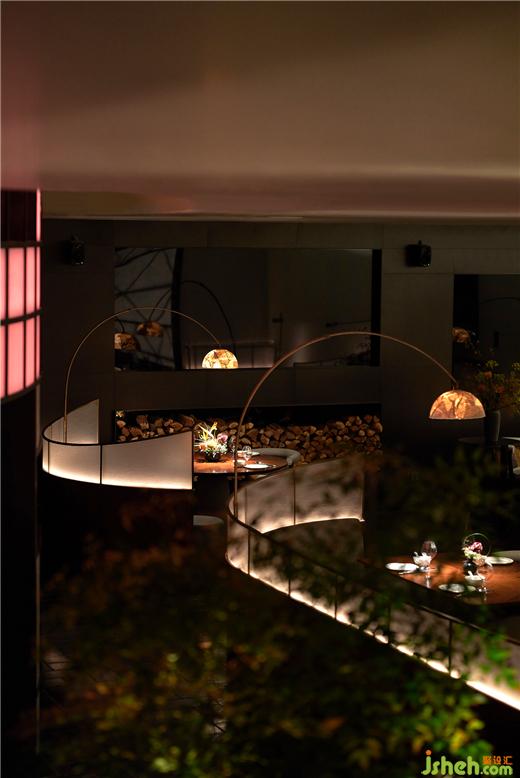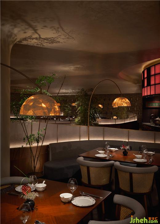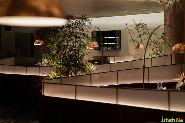 燈籠的尺度和材質(zhì)經(jīng)過反復(fù)調(diào)試,以獲得最佳透光效果,與之相匹配的,室內(nèi)燈光無限貼近自然,使天光、月光、燭光等等光的感知合一,形成感知上遠(yuǎn)大于室內(nèi)的自然觀想。山野植物挺修豐茂,恰到好處地自在生長(zhǎng)。南麓·薈館設(shè)計(jì)無論是竹、紙、木頭、金磚亦或者藝術(shù)漆面,豐富而頻頻變化的質(zhì)感折射出大量情緒顆粒,它們混合著光線不斷穿透、投影、游走,攪動(dòng)起勃勃生機(jī)。