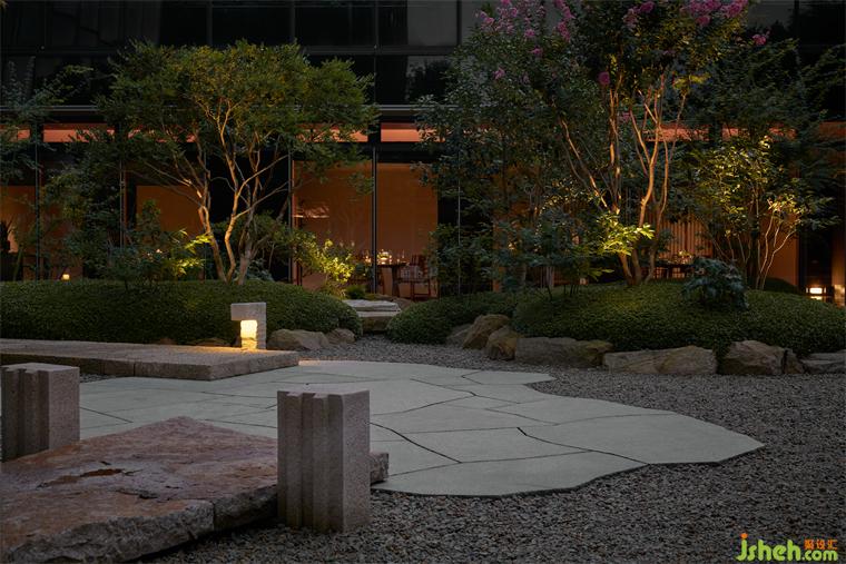 從不同角度看,庭院與餐廳互為內(nèi)外又彼此共融,庭院不過分營造,內(nèi)部不刻意炫技,旗鼓相當(dāng)而激發(fā)出大力道,借勢大江河,餐廳設(shè)計(jì)兼具內(nèi)斂與疏闊。