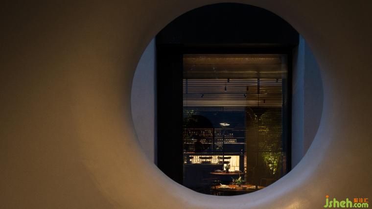 初次環(huán)游,建筑掩在園區(qū)樹影后,近入口時(shí)視覺能夠透過影壁上的圓形開孔穿透立面直達(dá)內(nèi)部。視覺的遠(yuǎn)端鏡面反射其間光影,人穿行其間層疊浮動(dòng),圓滑的孔洞如現(xiàn)實(shí)和虛幻空間的偶然重疊,象外有象、引人入勝。