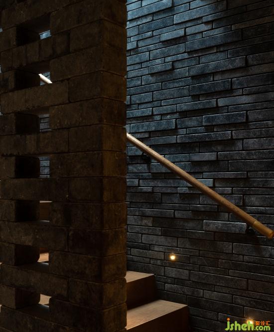 步入茶室需拾級而上,身側(cè)立面青磚有序陣列,天光傾瀉,恍若步入一個時間和空間都壓縮倒錯的通道,時間飛逝或停滯似乎皆有可能,正是經(jīng)過短暫的抽離,眼前豁然開朗——