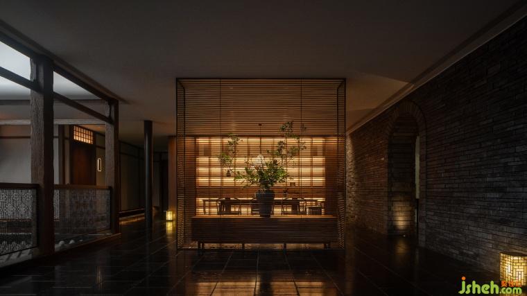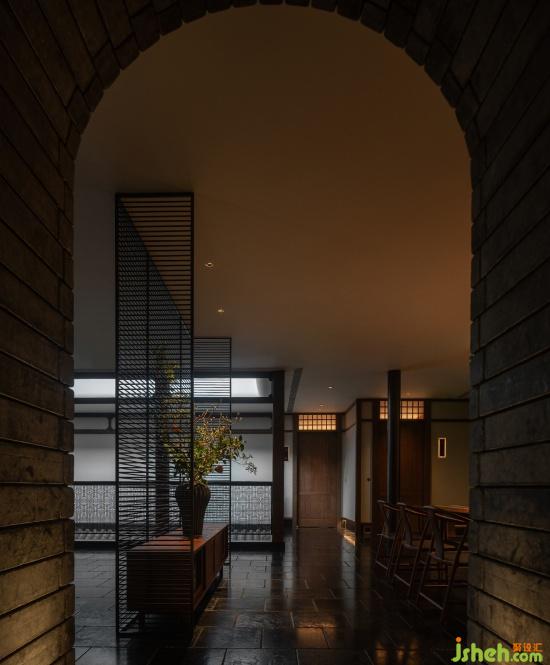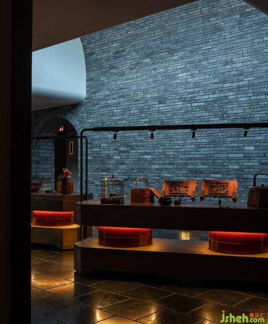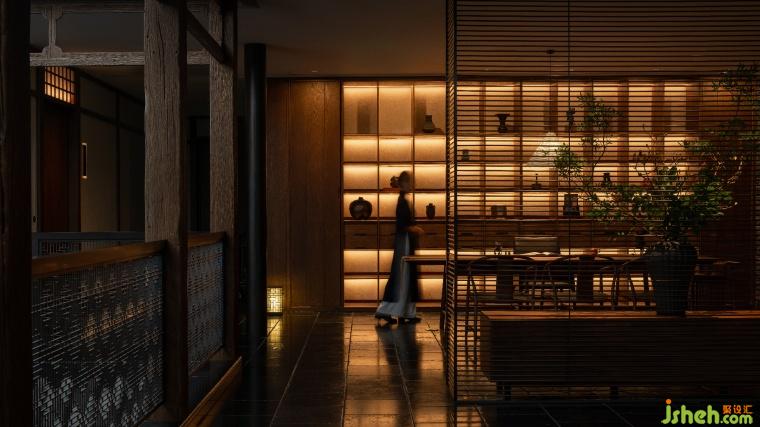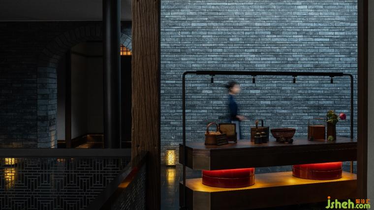 提籃陳列柜提示著一個不容薄待的大徽州,透過格柵,茶室在環(huán)游的盡頭靜待來客。