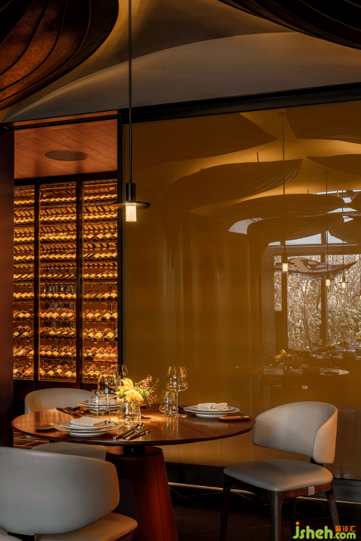 餐廳由多組尺度舒適、功能維度豐富的空間層層嵌套遞進(jìn),體驗是流動的,像一餐行云流水的盛宴。