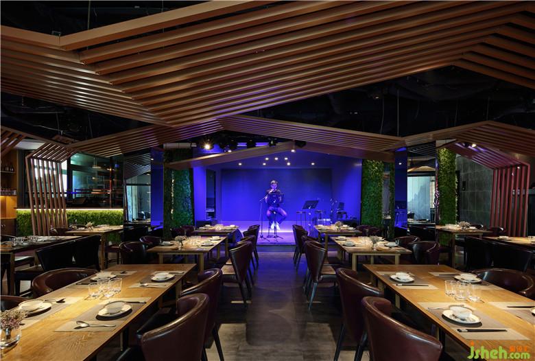 本項目的主要設(shè)計靈感來源于音樂中的五線譜,由于是音樂主題餐廳,所以根據(jù)整個空間布局,在餐廳的中心位置以五線譜為元素,做了三個造型隔斷作為整個餐廳的主亮點,以線條的方式將整個大廳空間拉伸,并以金色不銹鋼材質(zhì)凸顯整個餐廳的就餐檔次,給人一個全新的感官體驗。