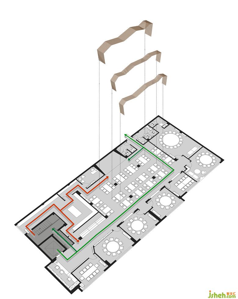 通過(guò)鏡面效果將整個(gè)空間置于一種無(wú)限延伸的錯(cuò)覺(jué)當(dāng)中。舞臺(tái)正對(duì)面的三個(gè)包間通過(guò)透明玻璃與大廳相融合,特定情況下既能保證體驗(yàn)者的私密性,又能讓包間里的用戶感受到大廳里駐唱歌手所帶來(lái)的現(xiàn)場(chǎng)感官體驗(yàn)。