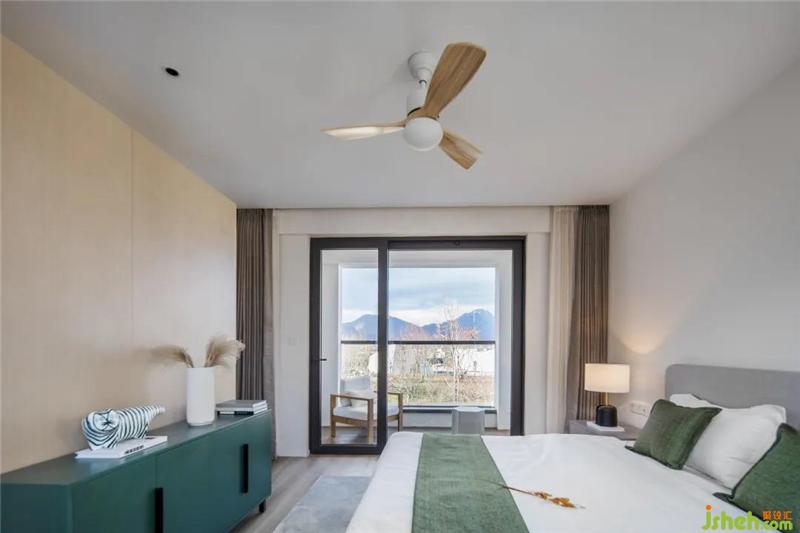 隨處可見的風扇燈既是有趣的照明也是讓空氣流通的好物。窗門緊閉下打開空調和風扇燈,旋轉的風扇燈能夠將空氣打散,涼意均勻散布;樣板房設計打開門窗后,又能與麗江的風協(xié)同,讓麗江的靈動隨風穿堂而過。