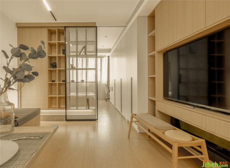 在臥室和客廳中間,需要一處既能保證采光、又能擁有私密性的隔斷。