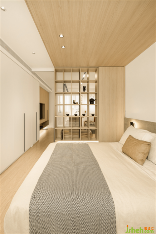 書柜墻體除了在空間上分隔了主臥與起居室,還為熱愛閱讀的女主人收藏愛書提供了方便,讓200余冊書籍,也有了展示收納之處。