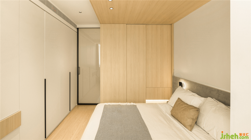 主臥內(nèi)設(shè)置了整面墻的衣柜儲存空間,再多的衣服也不用擔(dān)心收納問題;白色的柜體同時也給空間的明亮感帶來了加持北京裝修設(shè)計。