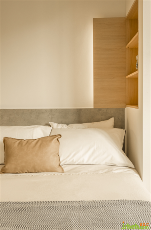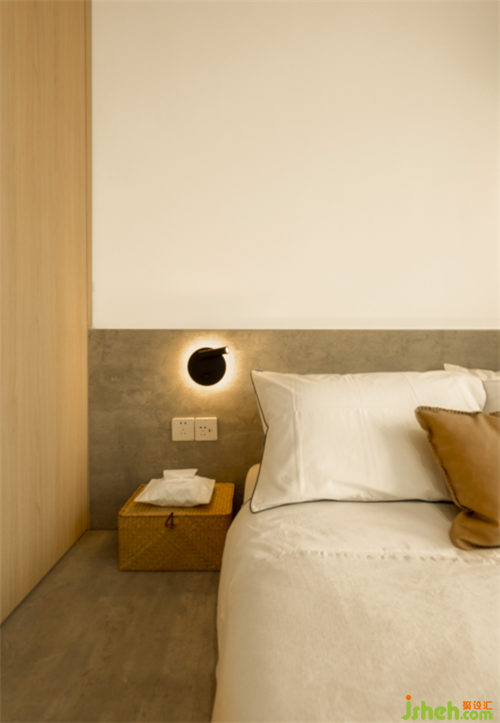 一處讓人心安的臥室環(huán)境可以很好地提升睡眠質(zhì)量。主臥大面積白色、原木色的色彩使用,配合暖光色調(diào)的床頭燈,溫柔、輕松,營造出溫馨的臥室氛圍感和舒適感。