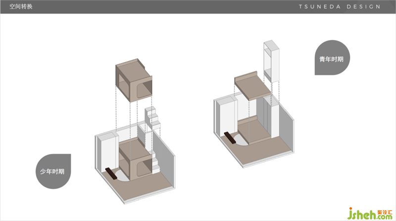 △兒童房少年時(shí)期和青年時(shí)期的多變組合方式