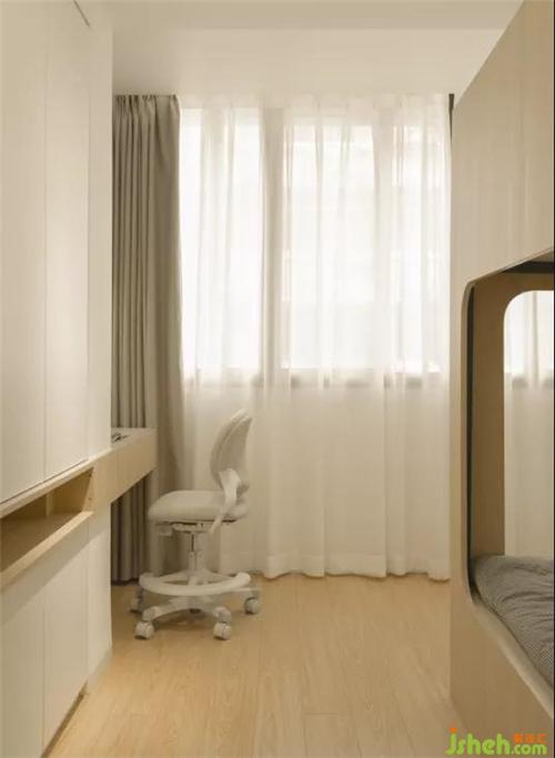 北陽臺很好地補(bǔ)充了兒童房的活動(dòng)區(qū)域,窗邊一側(cè)的小書桌,保證了自然采光的優(yōu)勢,給小朋友提供了畫畫、學(xué)習(xí)的空間。其余的空間功能,既滿足了家長與女兒的日?;?dòng),又可以在后期根據(jù)需求擺放古琴等樂器,最大限度的滿足孩子成長的需求。
