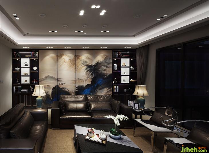 新古典藝術(shù)氛圍的家居空間,用一副張大千的山水畫做為客廳的背景墻,配以暖黃色的柔光,使整個空間的藝術(shù)氣息在不經(jīng)意間流露。同時,燈光的明暗節(jié)奏又使整個空間更顯豎式。整個家居體驗區(qū)除了溫馨、高檔之外,又多了一份莊重、沉穩(wěn)的生活氣息。