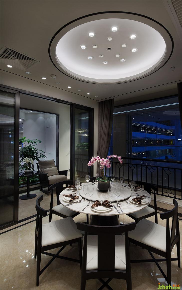 時尚的空間設(shè)計與古韻家居融合出新的視覺享受。明凈的燈光使得餐廳光可鑒人,一反傳統(tǒng)暖黃色的設(shè)計,別具一格,好一派“觥籌交錯,舉杯對飲”的景象。