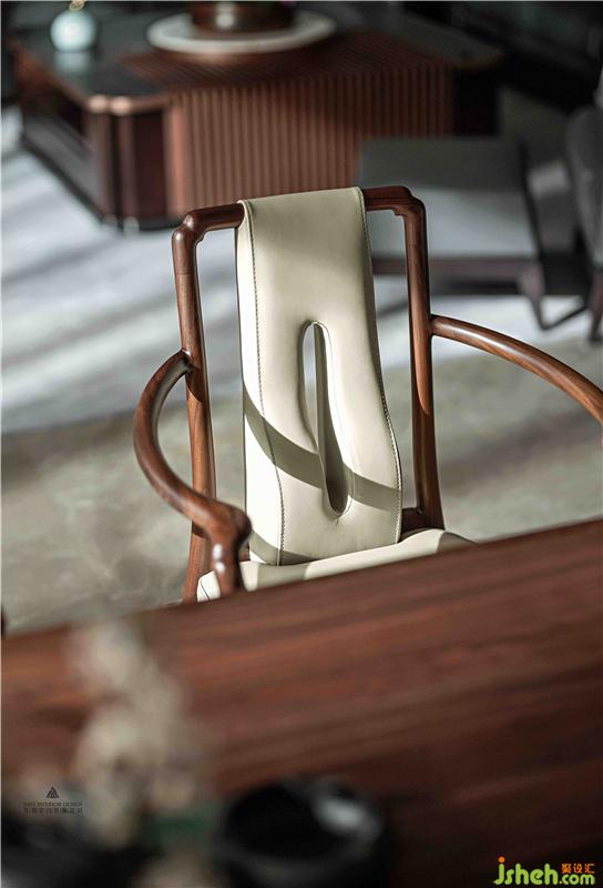 “如意逍遙椅”秉承吉祥官帽椅的氣質,線條流暢、構造簡約、款式雅致,切合宋代士大夫崇尚的清雅、閑適的生活情趣。會所設計