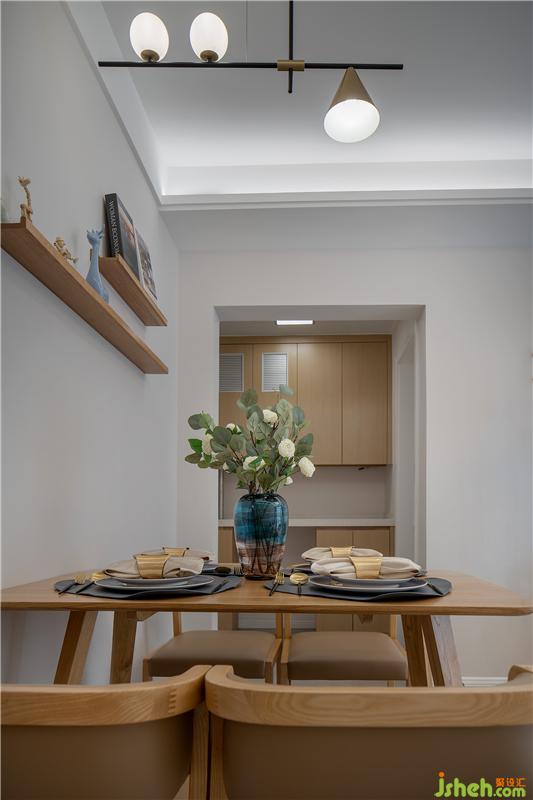 簡(jiǎn)約的餐廳搭配,在和馨的光影下溫暖喜人,原木色餐椅清新怡人,給灰白墻增添一排窗格擺上小小的飾品既沖淡了單調(diào)感,又有了藝術(shù)范,兩個(gè)人的安樂(lè)窩不用那么復(fù)雜。生活,就需要這樣的小確幸!