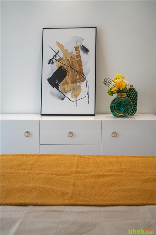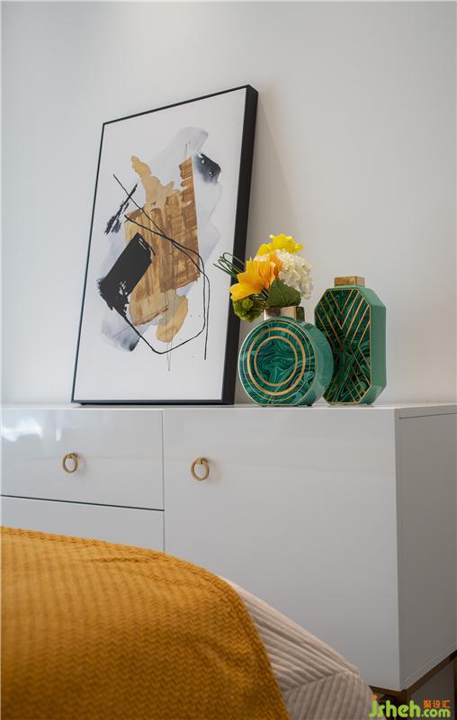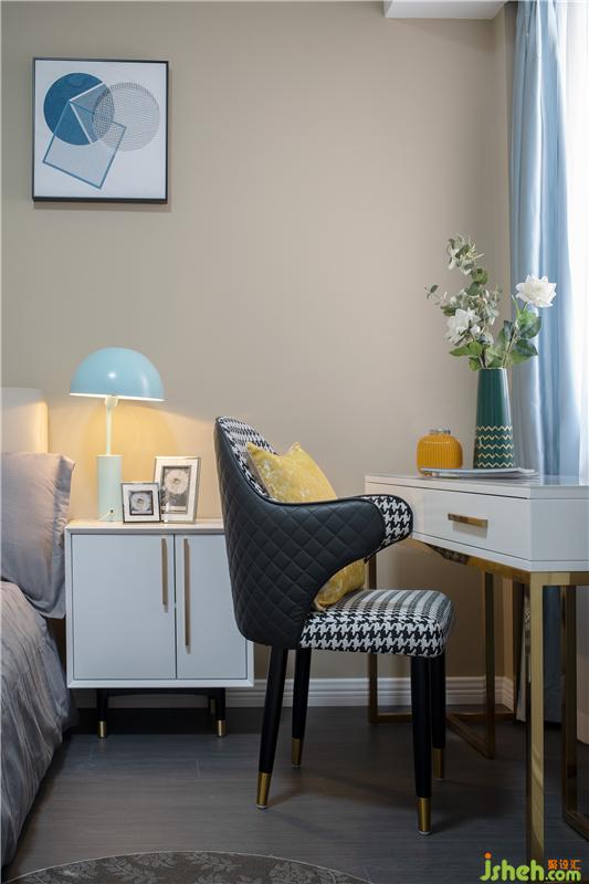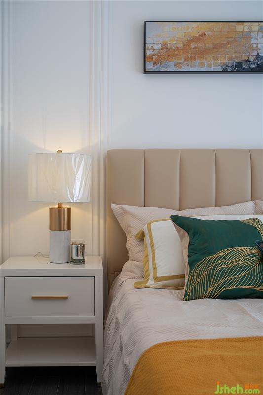 臥室布置淺色棉麻織物和乳白色系家具來(lái)制造舒適平和的觀感,燈飾與飾物搭配更顯簡(jiǎn)潔輕致,整體呈現(xiàn)出一種舒適自然、安恬靜默的休憩氛圍,好似清泉流水,緩緩而歌,待亥子時(shí)刻,夜深人入定,山河夢(mèng)間。