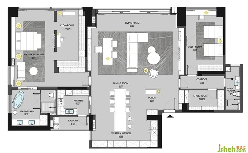 惠州家居設(shè)計采用明朗的線條,將空間進行了合理的分隔。面對擾嚷的都市生活,一處能讓心靈沉淀的生活空間,是業(yè)主心中的一份渴望,也是該方案中所體現(xiàn)的主要思想。因此,全開放式大廳設(shè)計給人以通透之感,避免視覺給人帶來的壓迫感,可緩解業(yè)主工作一天的疲憊。