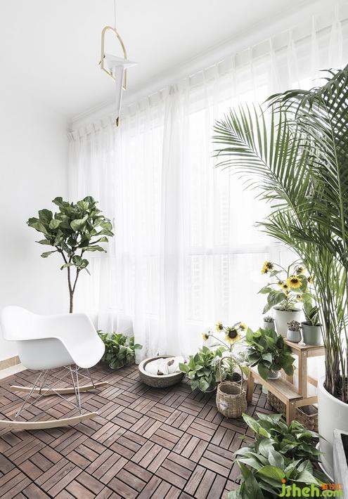 高矮有致的綠植花草掩映下的陽臺區(qū),適合盛載慵懶閑適的下午時光,坐在搖椅上,或喝茶讀書,或閉目養(yǎng)神,或發(fā)呆放空自己,尋找一份靜謐的獨(dú)處時光。