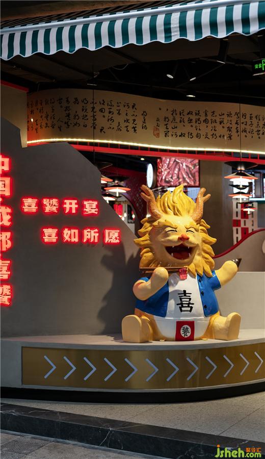 無論是視覺呈現(xiàn)上,還是實用便捷上,都有著無可比擬的競爭性,成都喜饕餐廳設計利用洞房花燭,喜從天降,久逢好友、金榜題名等大場景與火鍋用餐區(qū)相結合。